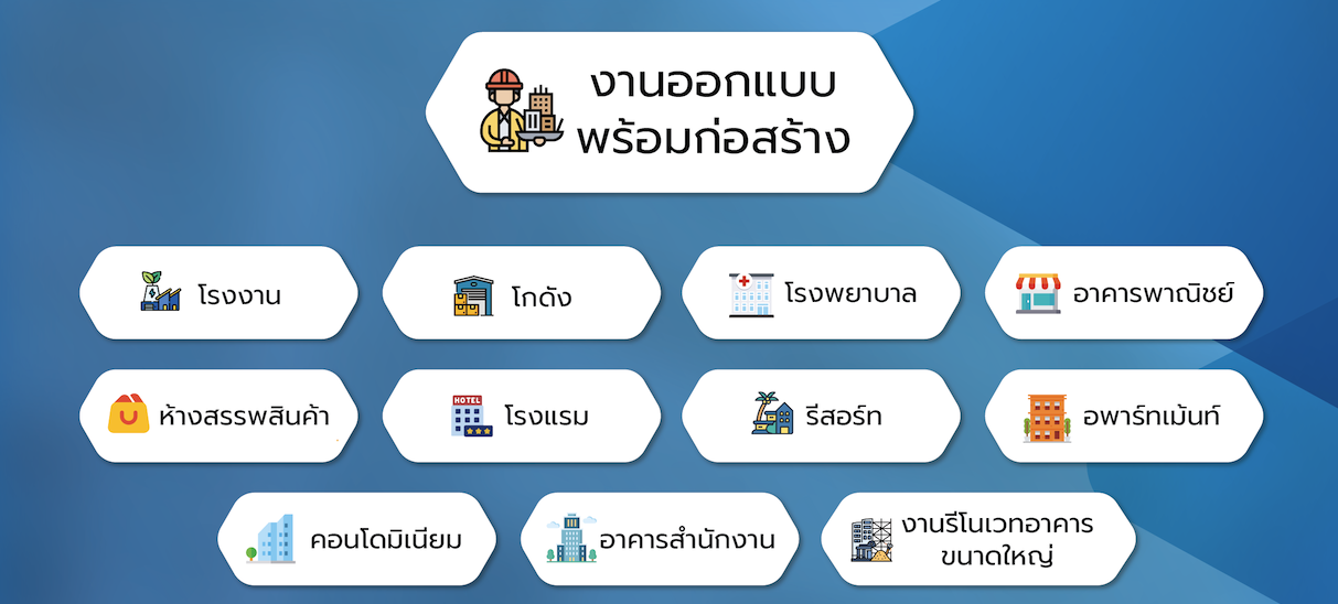 เรามีบริการออกแบบและก่อสร้างครบวงจรที่ปรับให้ตรงกับ ความต้องการเฉพาะของแต่ละโครงการ